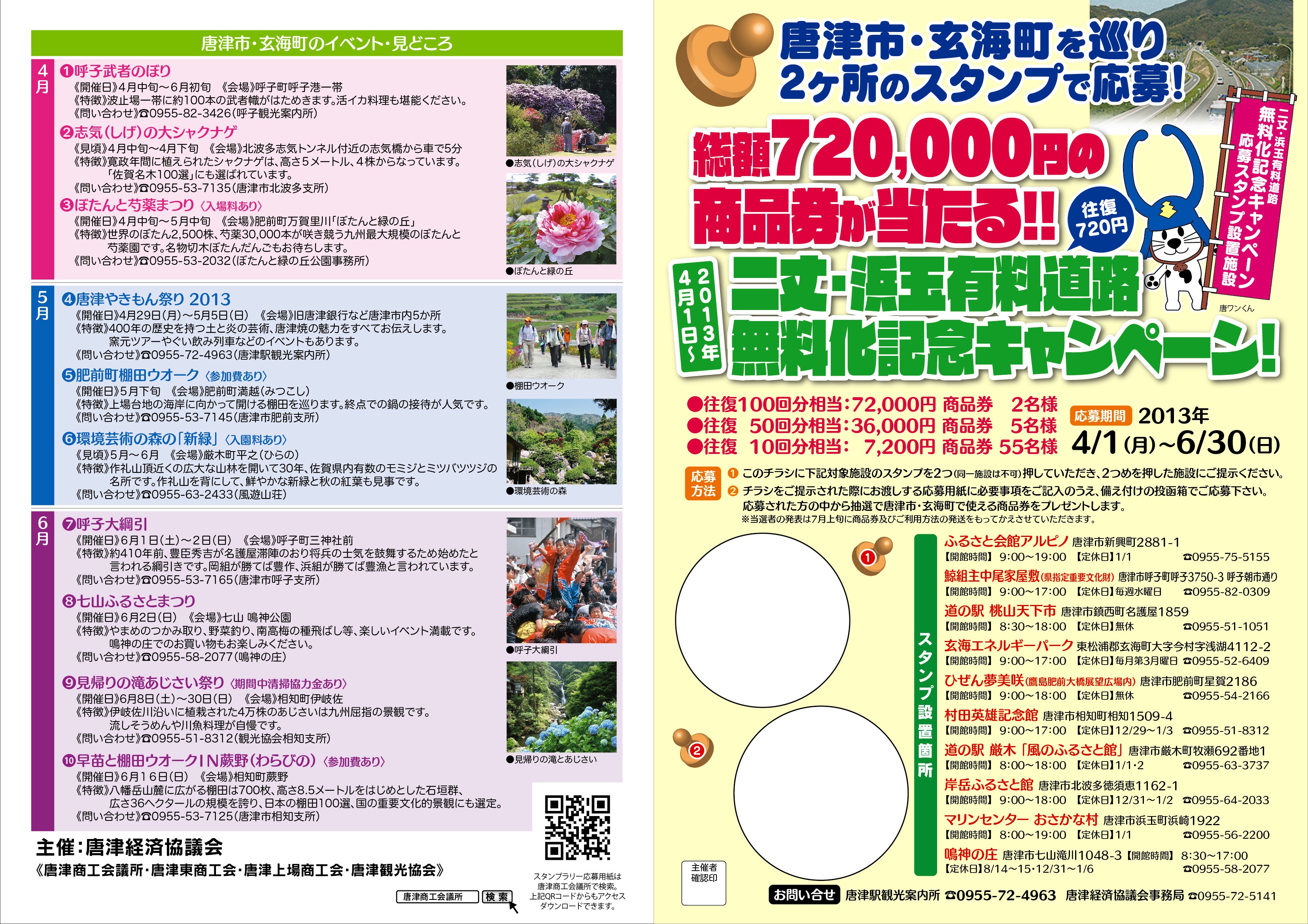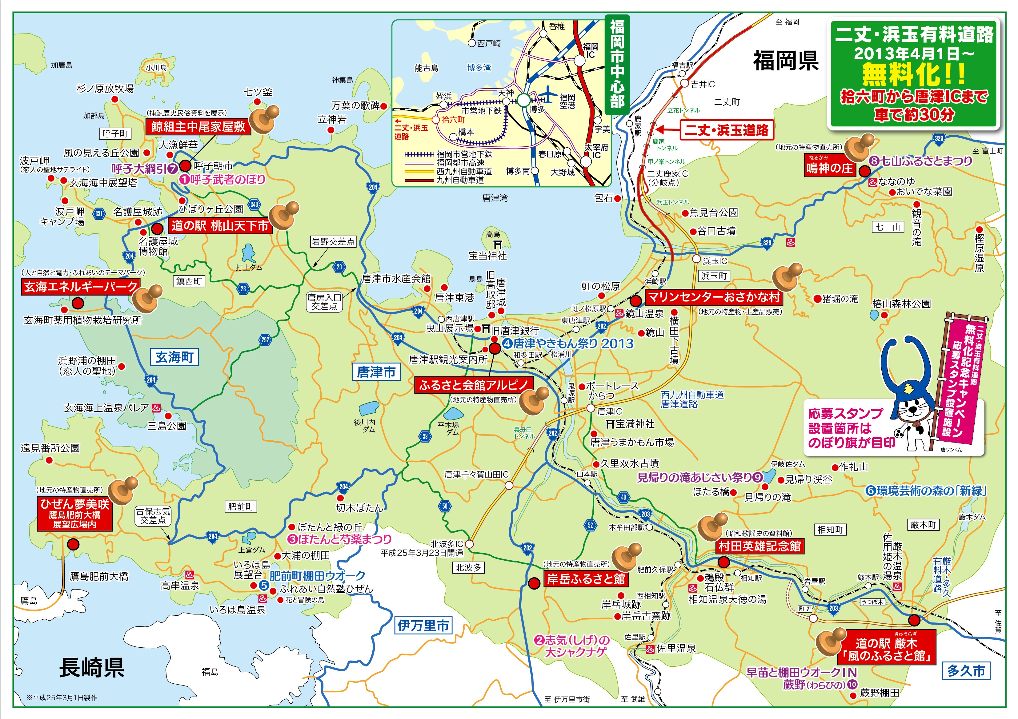 平成25年4月1日より二丈浜玉有料道路の無料化が決定いたしました。これを記念してスタンプラリーキャンペーンを実施いたします。