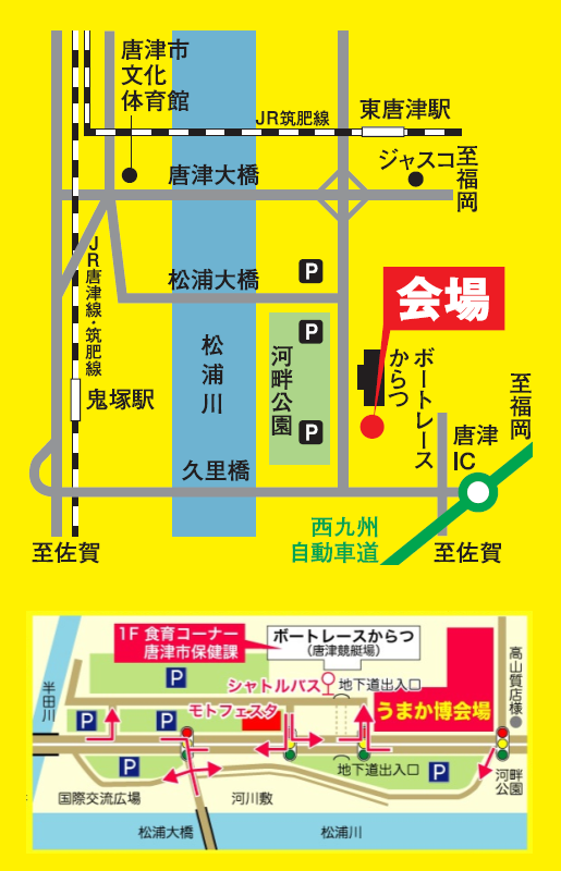 「唐津駅~唐津うまか博会場」間において無料シャトルバスを10分毎に運行致します [時刻表・運行ルートはこちら]