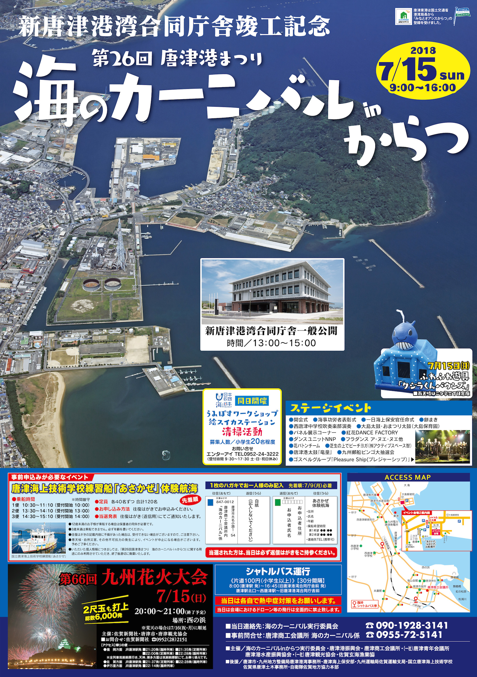 7月15日(日)9:00~16:00、唐津市の唐津東港一帯で「第26回唐津港まつり 海のカーニバルinからつ」が開催されます。
